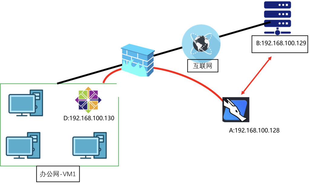 实验场景:D现在搭建了web服务 但是呢他不想将自己的端口暴漏在公网 所以它通过ssh远程端口转发 让A(客户)通过中转服务器B访问D的web服务