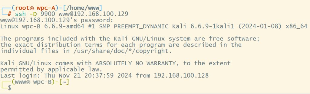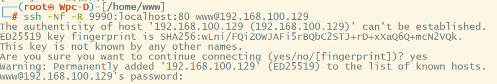 ssh -Nf -R 9990:localhost:80 www@192.168.100.129