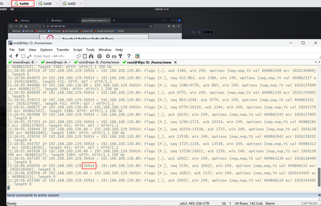 - 在D计算机上运行 ssh -Nf -R 9990:localhost:80 www@192.168.100.129